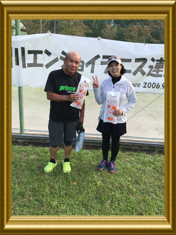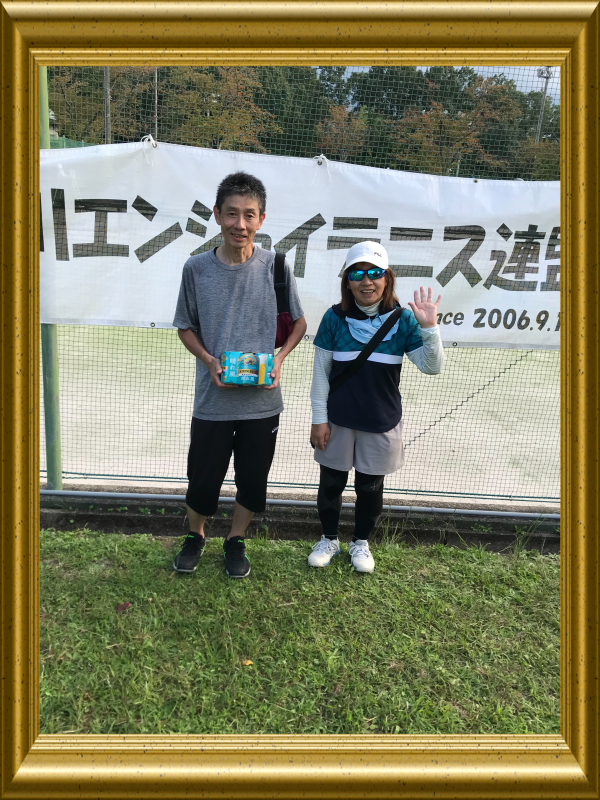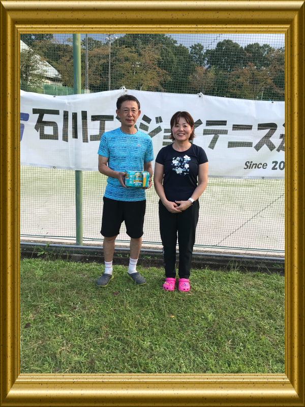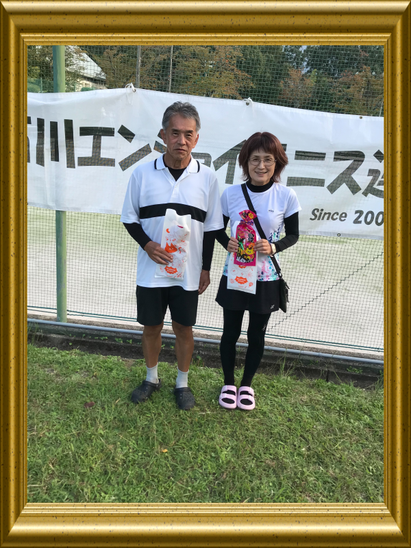 ![]() 混合ダブルスA2グループ優勝 北方章子・粟屋康弘ペア |