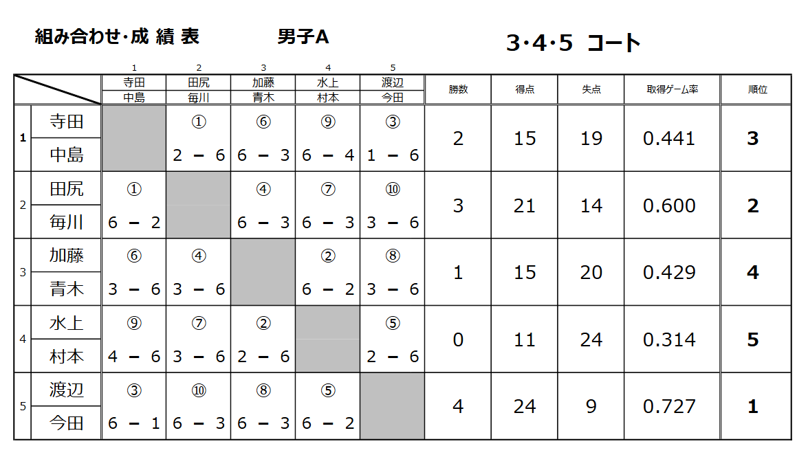 ![]() 男子ダブルスAグループ準優勝 田尻光一・毎川栄之ペア |