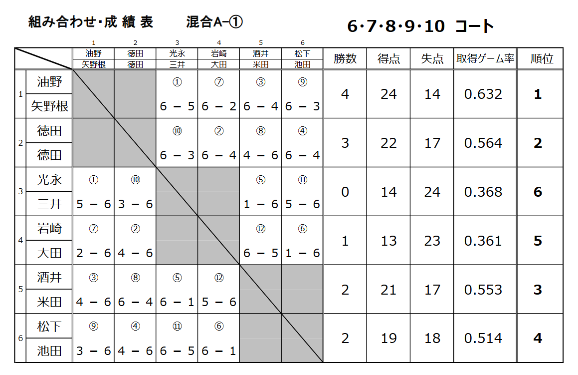 ![]() 混合ダブルスA2グループ準優勝 福光月美・池田論治ペア |